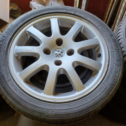 1 sæt Sommerhjul: Peugeot alufælge, 16" - 4 x 108 ET23. Er fra en Peugeot 208, men passer helt sikker også på andre Peugeot & Citroen modeller.
