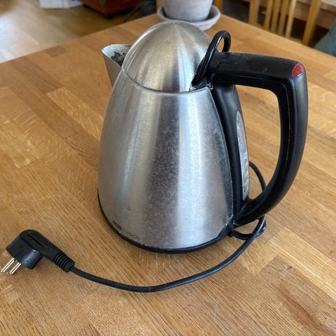 OBH Nordica elkedel i rød farve med sort håndtag. Elkedlen har rund, kompakt form og står på en separat 360° drejelig bund med ledning. Tuden er i metal, og låget har knop for nem åbning. Indersiden har synlig varmeplade og max-markering. Velegnet til opvarmning af vand til fx te, kaffe og madlavning i køkkenet.