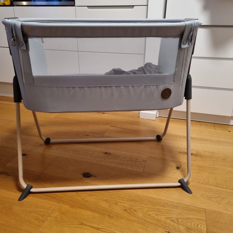 Superfin Maxi-Cosi Iora, som ikke fejler noget Den er også rigtig god at have med på overnatninger eller ferie, da den kan foldes sammen. Siden kan lukkes, så sengen kan stå selvstændigt. Medfølger taske til at pakke sengen ned i, så man kan tage den med sig på overnatninger.