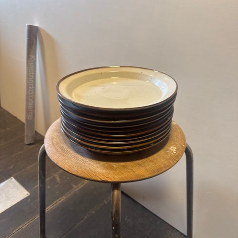 4 blå stentøjs middagstallerkner
