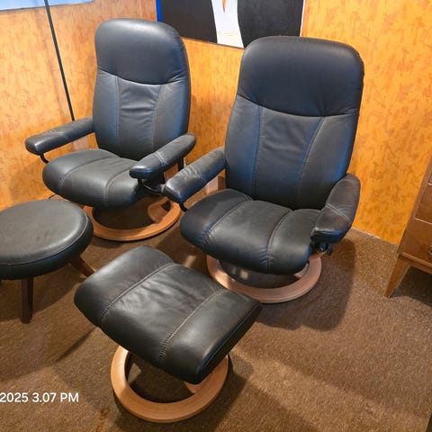 Stressless View Fodskammel bredde 60 cm. højde 45 cm dybde 48 cm. kan følge føddernes bevægelse sædet kan også låses fast, den er meget veldholdt sælges da den ikke bliver brugt. den er røgfri fast pris 1000 kr. afhentet i 2720 Vanløse 23303900