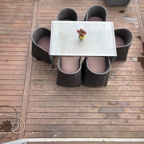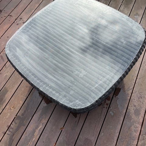 Caneline havemøbelsæt bord med glasplade og stole flet natur