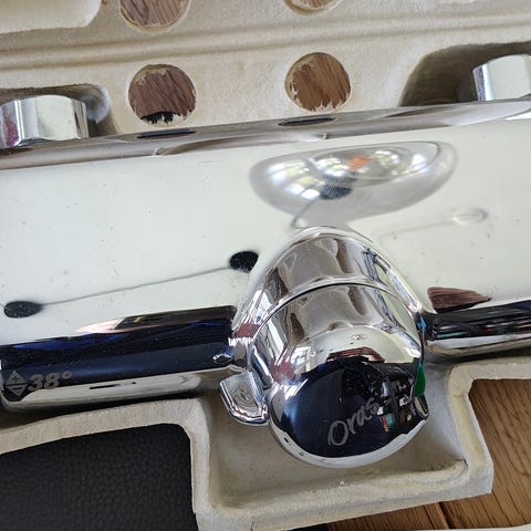 Oras batteri med termostat til bruser - i fin stand. Jeg har 3 i alt, men sælger dem gerne separat. Prisen er pr. stk.