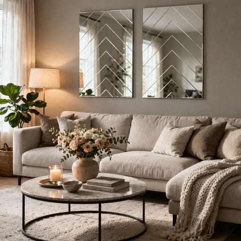 Spejlene har et flot facetslebet mønster, der reflekterer lyset på en elegant måde og skaber en eksklusiv stemning – perfekt til fx spisestue, entré eller stue.