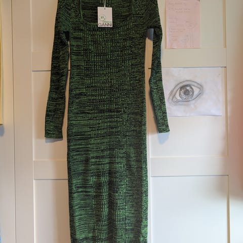 Super smuk, feminin og tætsiddende kjole fra Ganni.