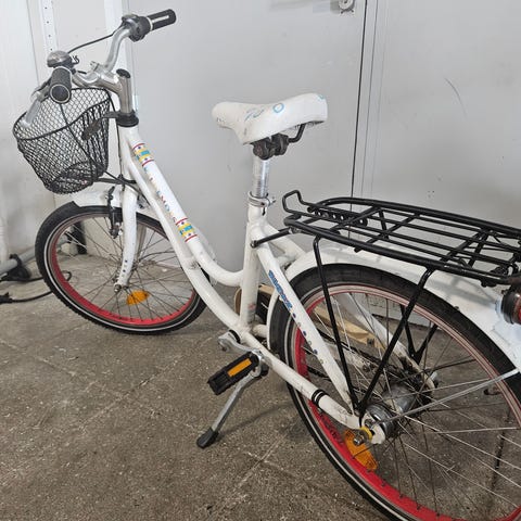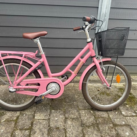 Børnecykel fra Mustang med 20" hjul i hvid farve. Cyklen har lav indstigning, forkurv i metal og bagagebærer. Udstyret med brune håndtag og brun saddel. Velegnet til børn, der passer en cykel med 20" hjulstørrelse, til daglig kørsel til skole, fritid og ture.