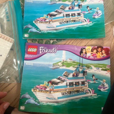 Sættet mangler nogle få klodser, og klistermærkerne på slæden er blevet slidt af.