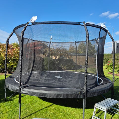 Sælges: Salta trampolin (427 cm ) inkl. sikkerhedsnet og stige.