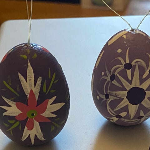 Vintage påskepynt, 5 stk. smukke håndmalede påskeæg (rigtige æg)