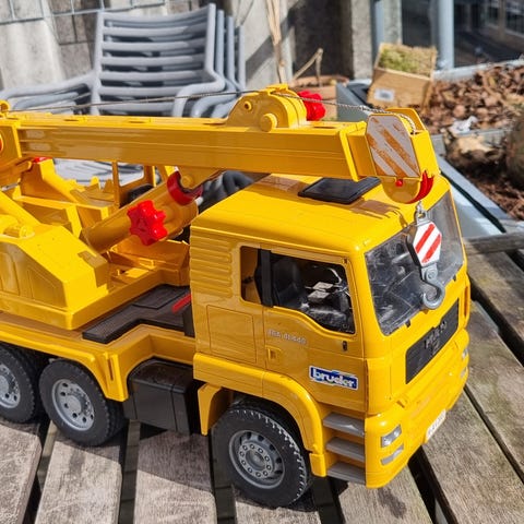 Bruder Scania brandbil legetøjsbil i rød plast. Modellen er udformet som en brandbil med drejestige og detaljeret førerhus med Scania-front. Køretøjet har flere realistiske detaljer, herunder stige på taget og brandrelaterede markeringer på siderne. Egnet som legetøj til børn, der leger med køretøjer og redningskøretøjer.