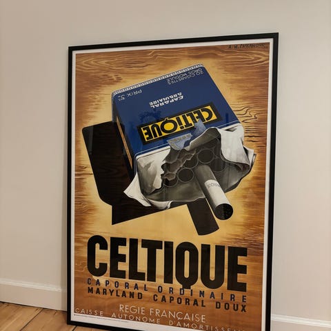 Flott retro Dubonnet poster av A.M. Cassandre selges inkl. sort ramme. Klassisk og dekorativt motiv som passer perfekt til stue, kjøkken eller barområde.