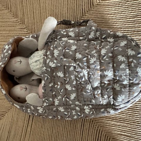 Maileg tvillinge klapvogn + To kaniner