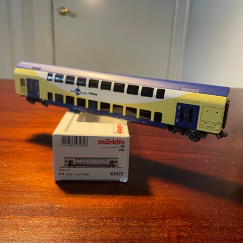 2 stk Märklin 43585 dobbeltdækker vogne DB 2. klasse med indvendig belysning og strømførende koblinger.