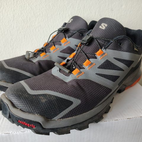 Salomon vandresko i størrelse 42. Skoene er sorte med snøresystem contagrip sål. Perfekt til udendørsaktiviteter.