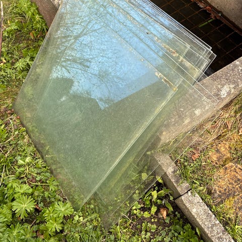Glasplader egnet til forskellige formål som fx reparation af drivhus. Juliana drivhus, glas i forskellige størrelser. Giv et bud