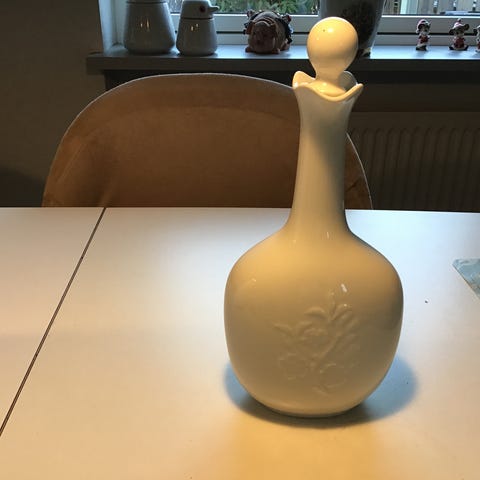 Royal Copenhagen karaffel, Porcelæn, Rigtig fin karaffel fra Royal Copenhagen med overglasur dekorations motiv fra Jysk Telefon, højde 19 cm.