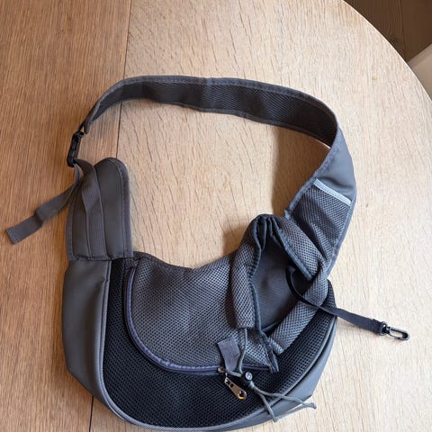 Skuldertaske til små hunde. Bred justerbar rem. Ikke brugt så meget. Den er fra Ollipet. Sender ikke