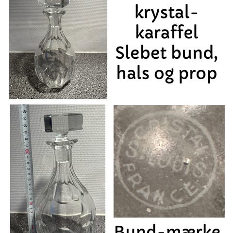 Royal Krona kat karaffel i klart glas. Karaffelen er formet som en siddende kat med detaljeret hoved og ansigt. Den har en åbning foroven med korkprop. Nederst ses originalt mærke med teksten “Royal Krona Sweden Full Lead Crystal”, hvilket angiver, at karaffelen er udført i krystalglas. Velegnet som karaffel eller dekorativ glasfigur i hjemmet.