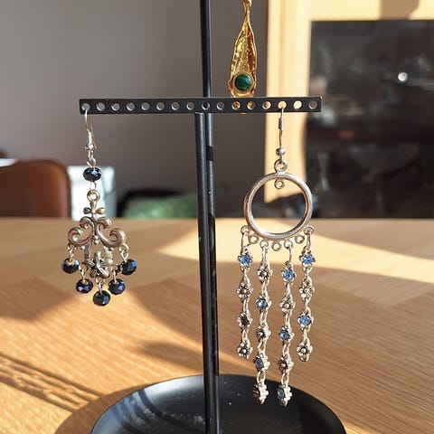 Emalje øreringe, beige/Rosa & sort (matcher bluse, som jeg også har til salg). Stor krog.