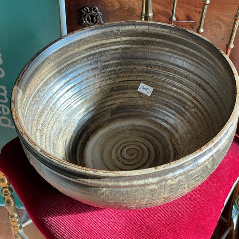 Stentøj, Stor skål, Dansk Designs Denmark, 18 cm klassisk stilikon skål med låg helt intakt kan bruges til suppe mm