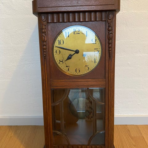 Th. Jørgensen mekanisk bordure i træ med optræksnøgle Skiven har romertal og mekanisk værk. Uret går fint.