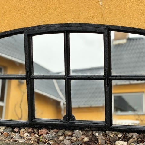 Charmerende spejl , designet som stalddørsvindue. H: 86, B: 53.