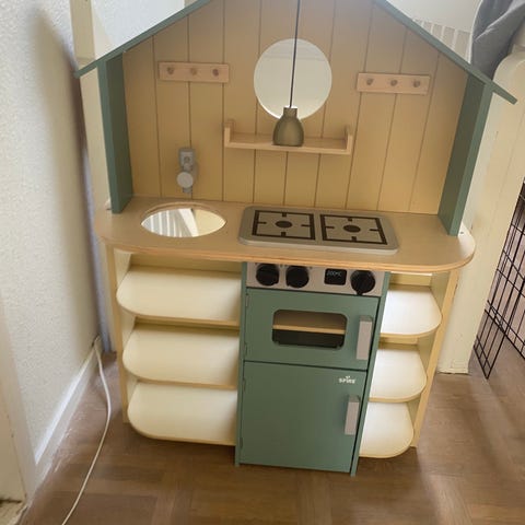 IKEA legekøkken i træ med vask og komfur