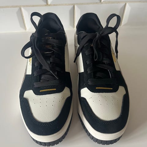 Puma sneakers i str. 39. Modellen er i sort med hvid sål og klassisk Puma-logo på siden. Overdelen fremstår i blødt materiale med snørelukning. Egnet til hverdagsbrug og fritid. Unisex-model afhængigt af pasform.
