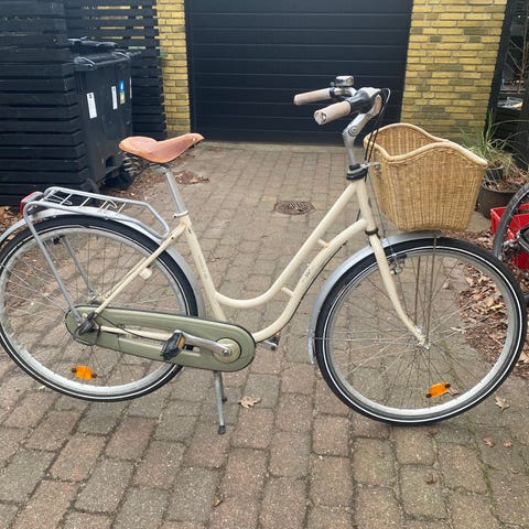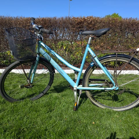 Vi rydder op i sommerhuset - er der en, der kan bruge en grøn damecykel? Skal fikses.