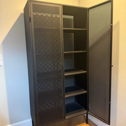 Proff skabet er fremstillet af kraftigt, pulverlakeret stål, der sikrer holdbarhed og stabilitet. Ventilationshuller i dørene giver skabet god luftcirkulation, så du undgår et lugtende, indelukket skab.