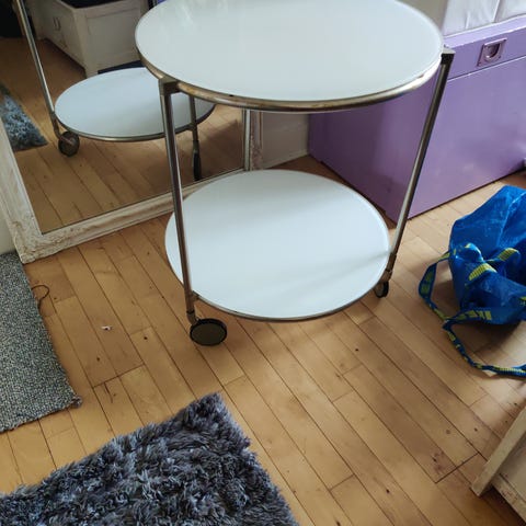 Bord med hjul har brugs spor fra røg frit og dyr frit hjem