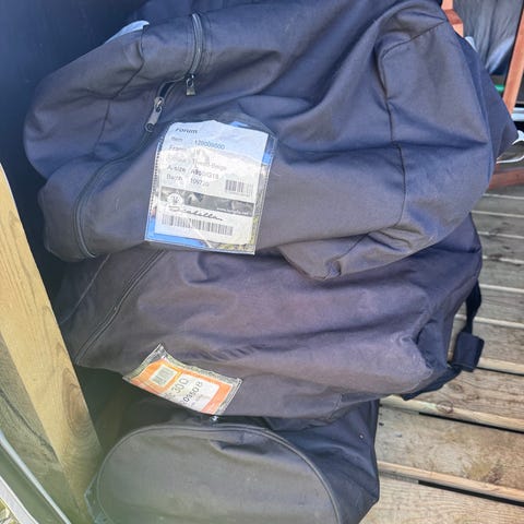 Der medfølger telt, stål stænger, og diverse plykker.