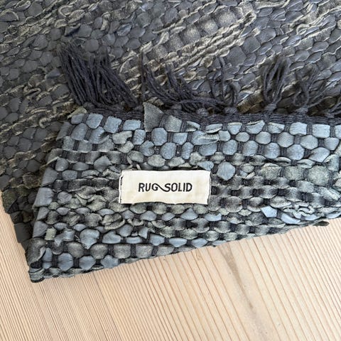 Rug Solid flettet læderløber i sort/grå nuancer. Løberen har flettet struktur med ruskindsender. Velegnet til gangarealer som entré, køkken.
