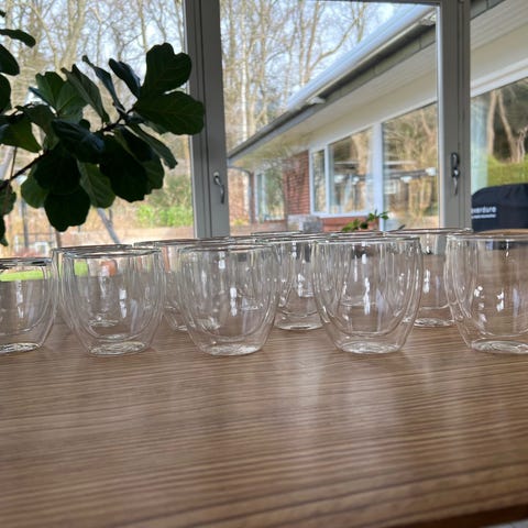 Kasse med 4 stk. originale Bodum Pavina dobbeltvægget termoglas.