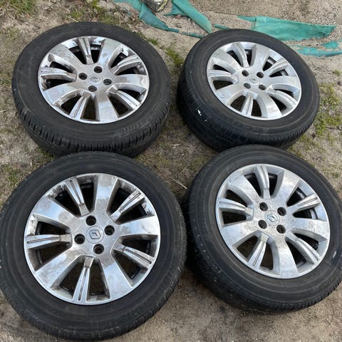 Aluminiumsfælge med Good Year sommerdæk og opbevaringsstativ og med hjul og dækken sælges.