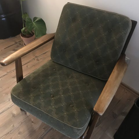 Restaureringsprojekter. Dansk designet loungestol i 60'erne . Stolen er i teaktræ, komfortabel lænestol designet af Hans Olsen og fremstillet af danske møbelsnedker Bramin.