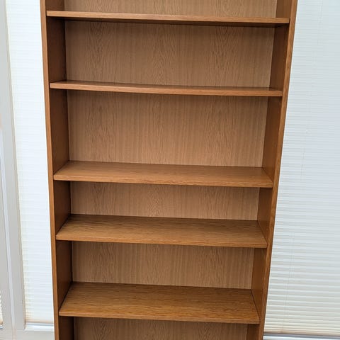 Flot dansk designerreol fra 70'erne med 6 hylder i egetræ.