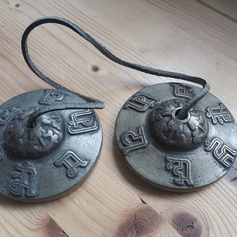 Meditations klokker fra Tibet. Har fantastiske overtoner. 6 cm bred