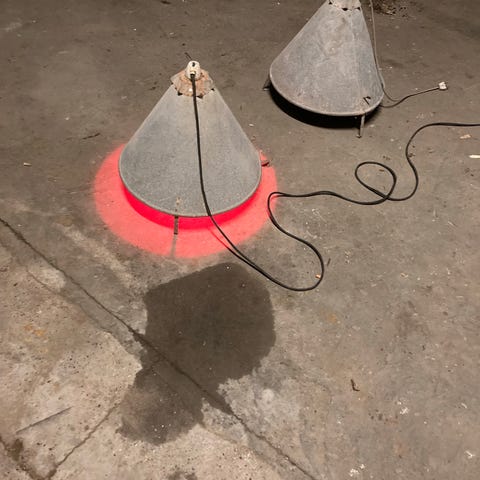 Dyrlæge instrumenter i rustfrit stål. Sættet omfatter pincetter, sakse og lign.