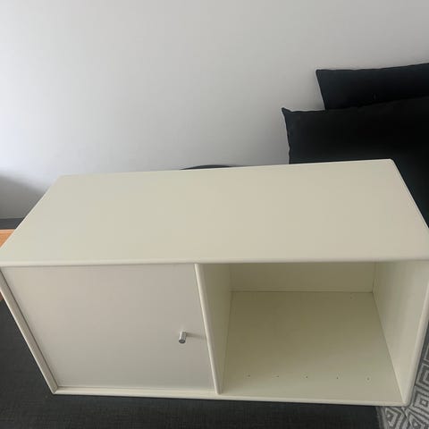 Reol til ophæng. Har fået skader efter utæt flaske med glasrens. Maling krakelerer eller buler op. Men er du en handyman kan det fikses, siger fagfolk.