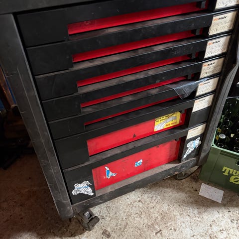 Bahco værktøjsvogn med flere skuffer og integrerede skumindlæg med håndværktøj. Vognen er på hjul og har front med Bahco-logo. I skufferne ses blandt andet topnøglesæt med forskellige toppe og skraldenøgler, skruetrækkere, T-nøgler, unbrakonøgler, fastnøgler, nedstryger, hobbykniv og diverse bits. Værktøjet er organiseret i formskåret skum, så hvert stykke værktøj har sin faste plads. Egnet til opbevaring og organisering af håndværktøj i værksted, garage eller lignende arbejdsområder.