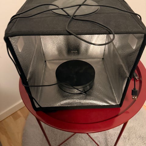 Lysshow anlæg, bestående af kontrolboks og 2 lysbokse med farvede spotpærer. Inkl. tilslutnings kabler. Anlægget styres fra musikanlæg via phono stik.