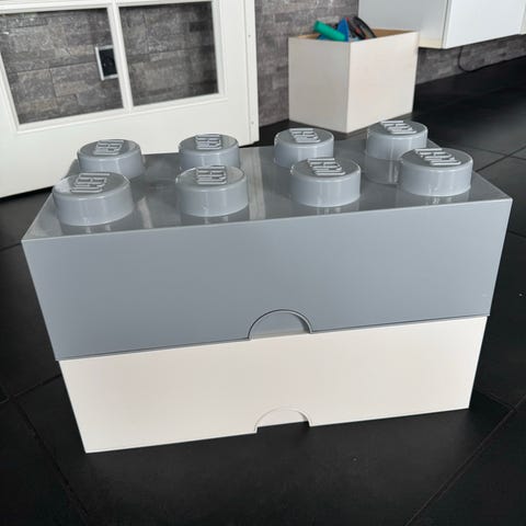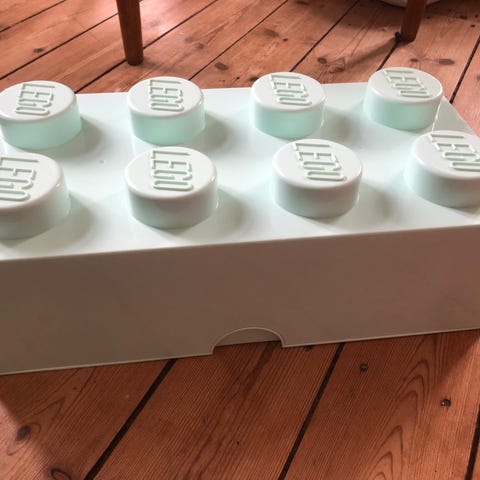 2 stk gode Lego opbevaringskasser i mintgrøn og knækket hvid.