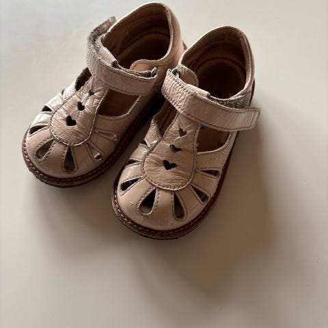 Lædersandaler til børn, komfortable og holdbare til hverdagsbrug. Har synlige brugsspor, men er stadig funktionelle og klar til brug.