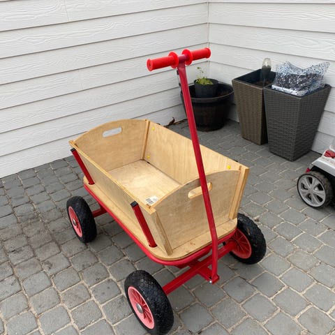 længde 116 cm brede 48 cm god stærk model , med luftgummihjul og lejer i hjul så den køre let , virker perfekt