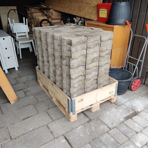 Belægningssten i grå farve, rektangulær form, egnet til udendørs brug som terrasse, indkørsel eller gangarealer. Stenene lægges i forbandt og giver en jævn og stabil overflade. Kan anvendes til både private haver og andre udendørs arealer, hvor der ønskes en fast belægning.