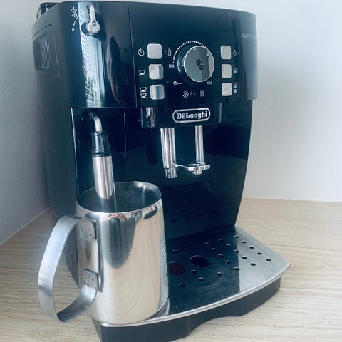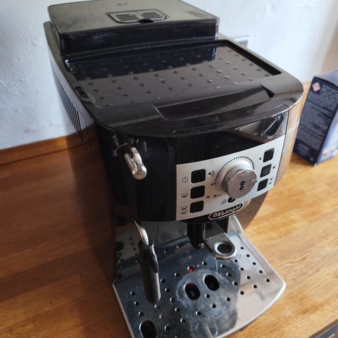 Sælger denne fine Delonghi Magnifica Start fuldautomatiske kaffemaskine i pæn stand. Altid brugt med vandfilter og afkalket ved behov. Maskinen er 1 år gammel og ikke brugt særlig meget. Kan lave den mælkekaffe man ønsker (cappuccino, Latte mv), espresso og sort kaffe. Prisen kan forhandles i en hurtig handel. Vil blive afkalket inden afhentning.