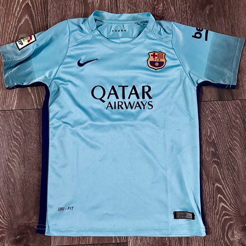 Nike FC Barcelona fodboldtrøje til børn i størrelse 140. Trøjen er i blå og rød med klublogo på brystet og sponsortryk på fronten. Fremstillet i 100 % polyester. Egnet til fodbold og anden sport eller som fantrøje til hverdagsbrug.