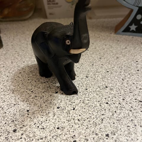 Den elefant der er alene er 14 cm høj og 15 cm lang