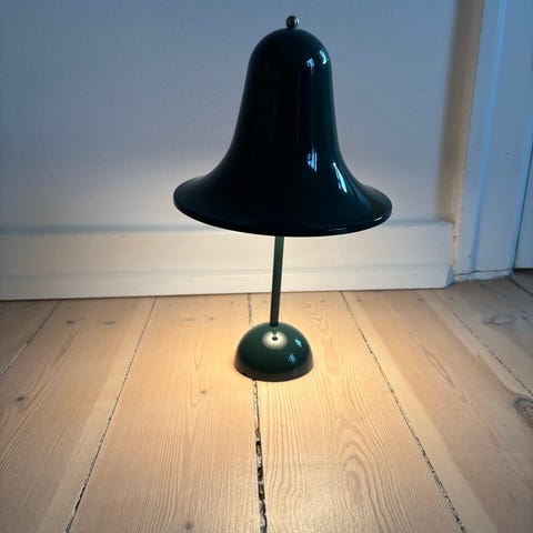 Sælger disse utroligt flotte og stilrene Pantop Portable bordlampe i krom, designet af Verner Panton.